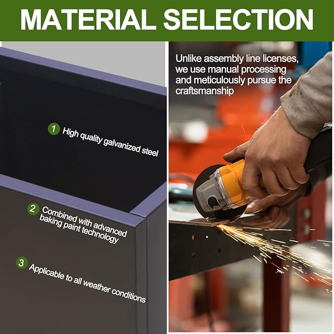• 【ROBUST METAL CONSTRUCTION】Crafted from sturdy galvanized steel, this spacious planter boasts exceptional durability, ensuring it withstands outdoor elements without rusting or fading. Its weather-resistant design makes it suitable for year-round use in temperatures ranging from freezing cold to scorching heat, ideal for enhancing both indoor and outdoor settings.