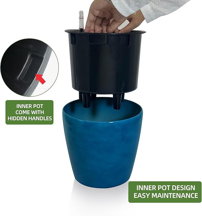 Dexceder 9x8 Inches Self Watering Planter Indoor Outdoor, Inner Pot Design, Thickened Table Flower Plant Pot with Water Level Indicator (Peacock Blue Gradient)