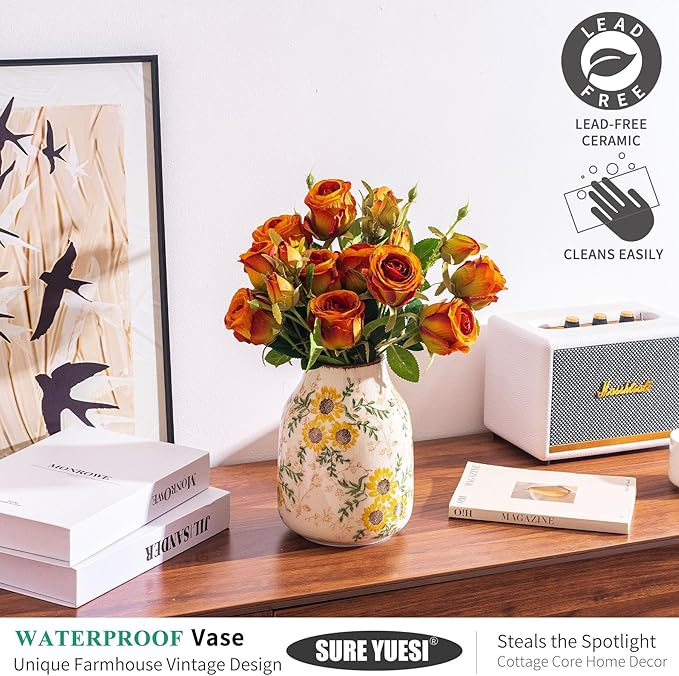 • MULTI-SCENE DECOR VERSATILITY: Elevate fireplace mantle decorations, kitchen counter decor, or table centerpieces with this 7.8-inch ceramic vase. Holds fresh flowers, dried stems, or standalone as sunflower decor in living rooms, offices, or Tuscan-style interiors.
