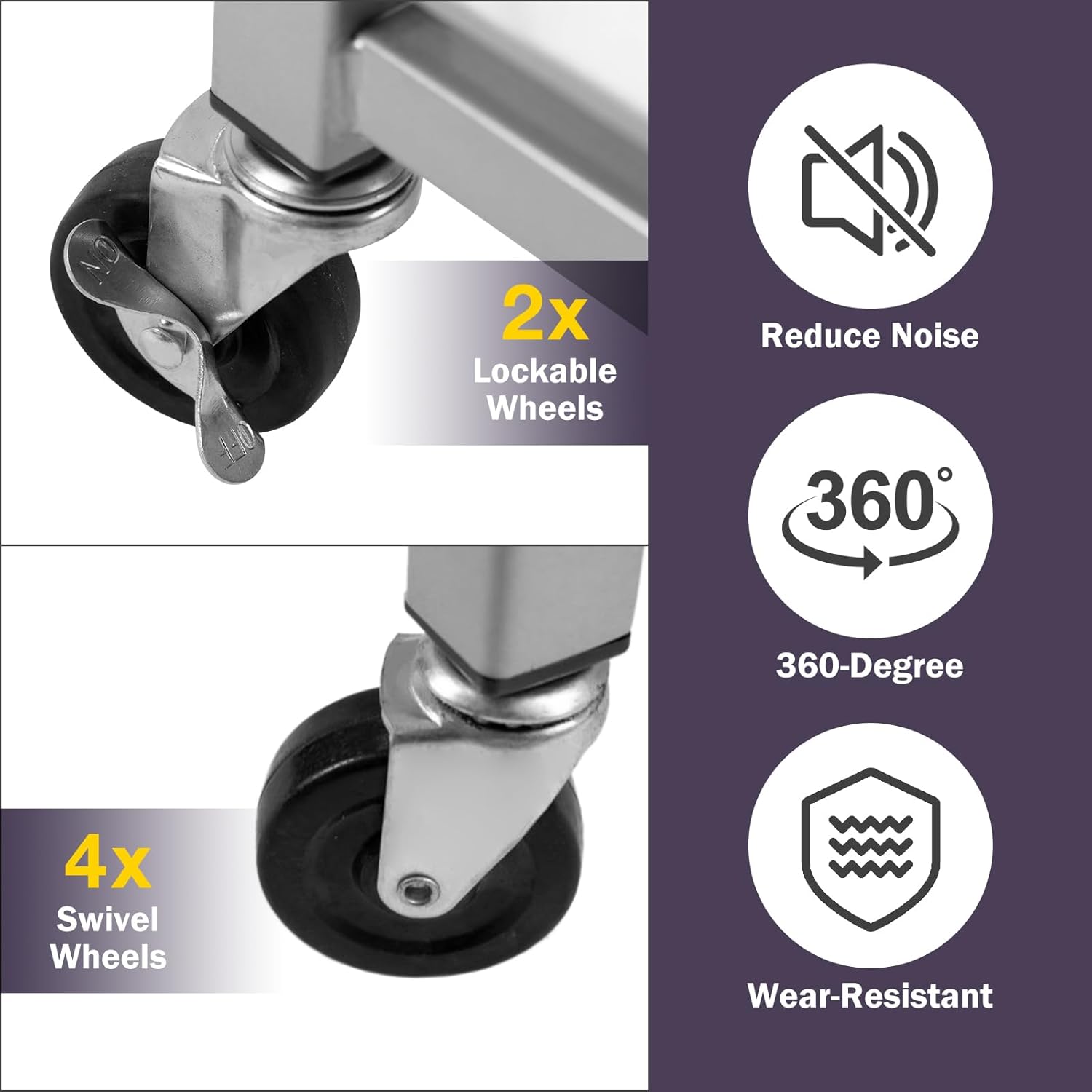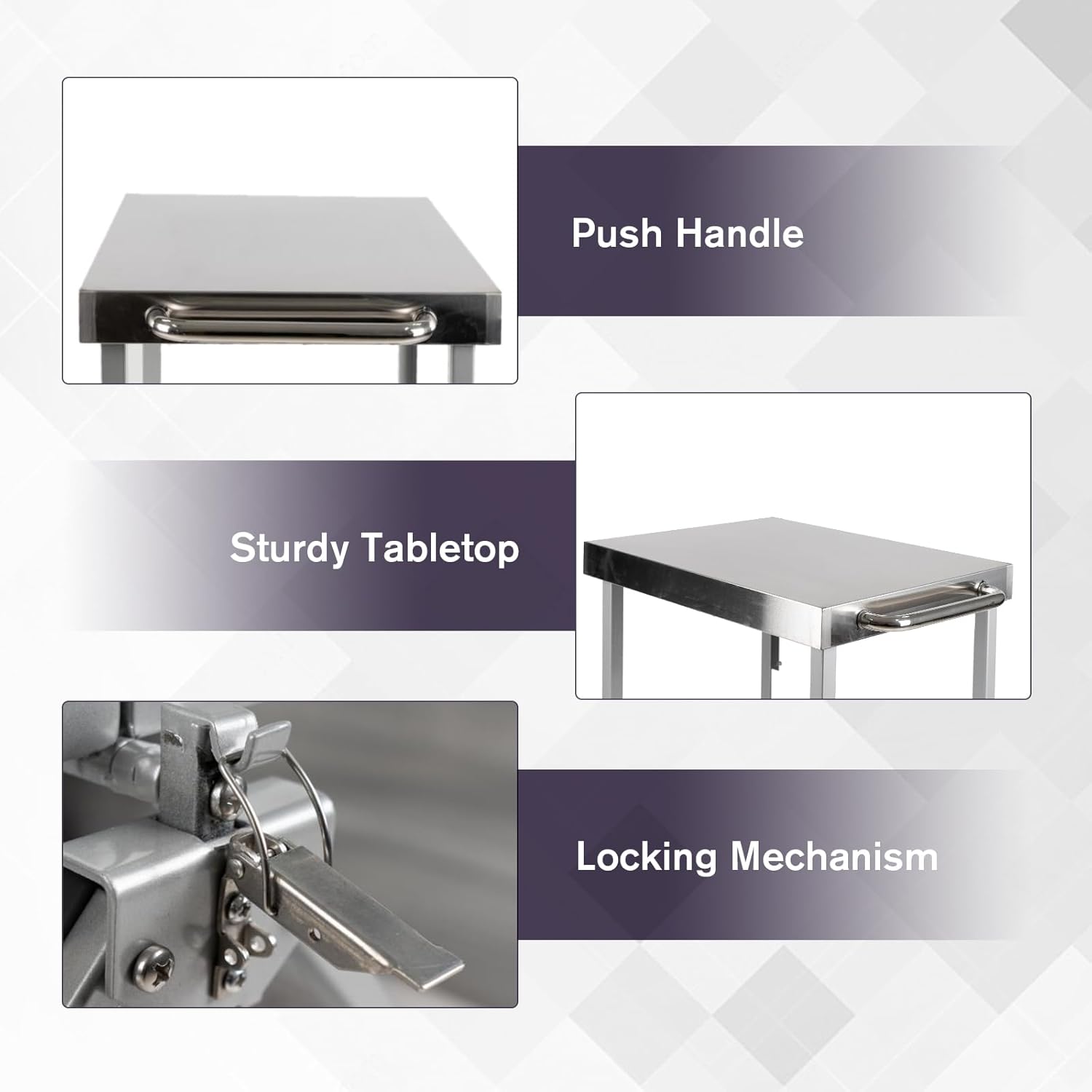 • 【Versatile Functionality for Modern Kitchens】: Transform your kitchen with a steel table cart that doubles as a prep station, storage solution, or even a mobile bar. Its multi-functional design makes it an indispensable tool for both casual and professional cooks. Whether you're hosting a party or preparing meals, this versatile kitchen cart is ready to enhance your kitchen experience.
