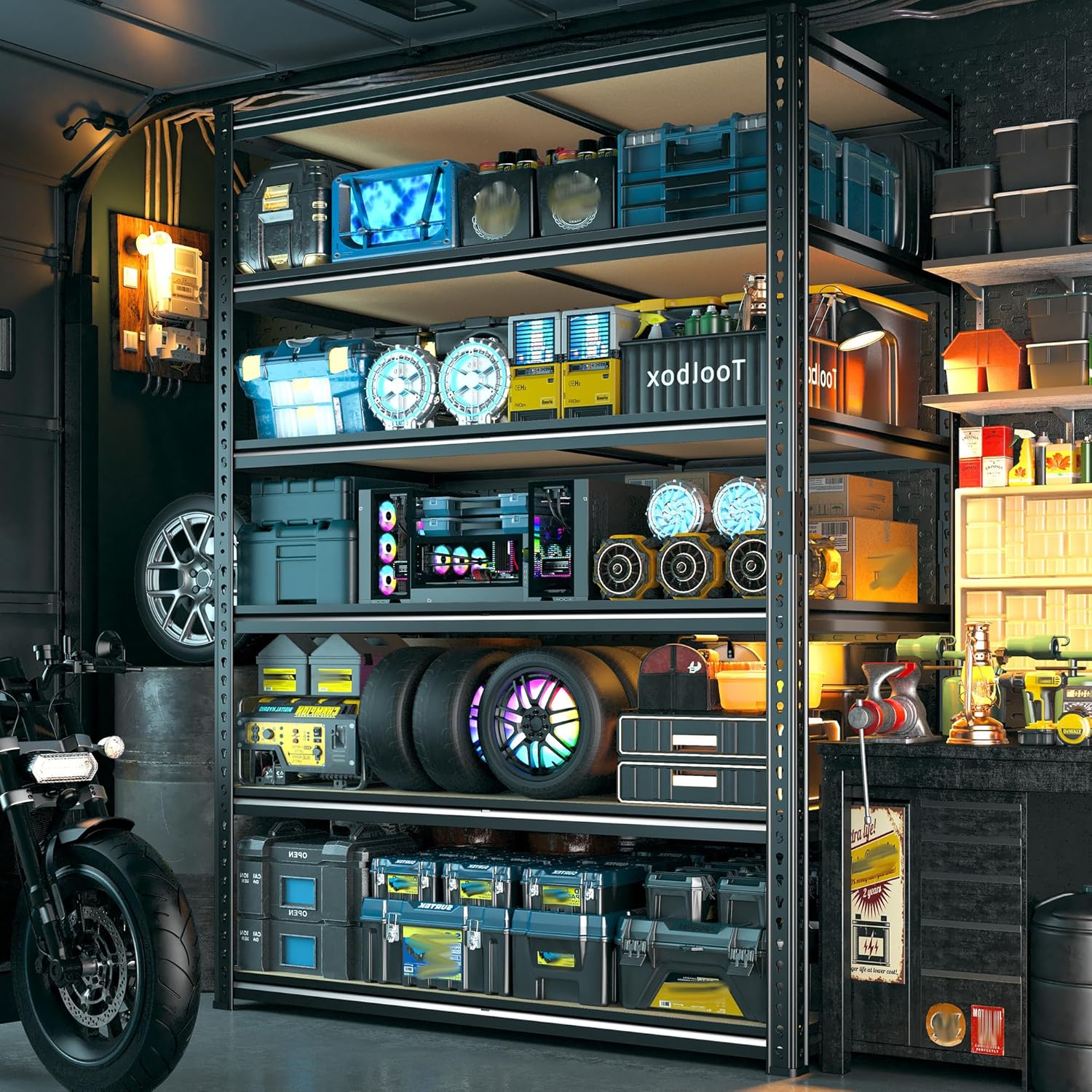 • 【Safe & Sturdy Rolled-Edge Construction】The shelves' thickened steel columns feature smooth edges that protect hands from sharp corners while reinforcing structural durability. The industrial-chic rolled design adds sleek aesthetics to garages, workshops, or pantries — safety and style united
