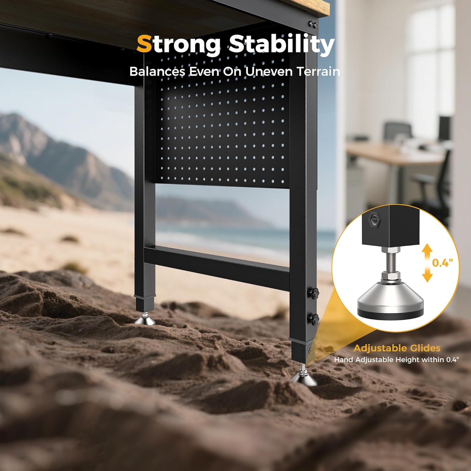 • Stable Structure: Tabletops made of rubber wood have a long lifespan and are environmentally beneficial;Premium carbon steel adjustable glides that can sustain heavy-duty tasks with a maximum load capacity of 2,000 pounds offer stability.