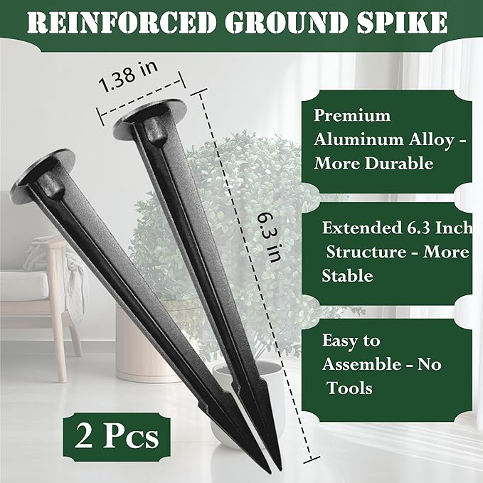• Easy Assembly : Equipped with a 6.3 inch metal ground spike, it's easier to plant compared to traditional flower pots. The ground spike design allows you to effortlessly insert it into soil, grass, or pots without additional tools, making installation simple and placement flexible. Note: The leaves may be slightly deformed during transportation and need to be reshaped manually.