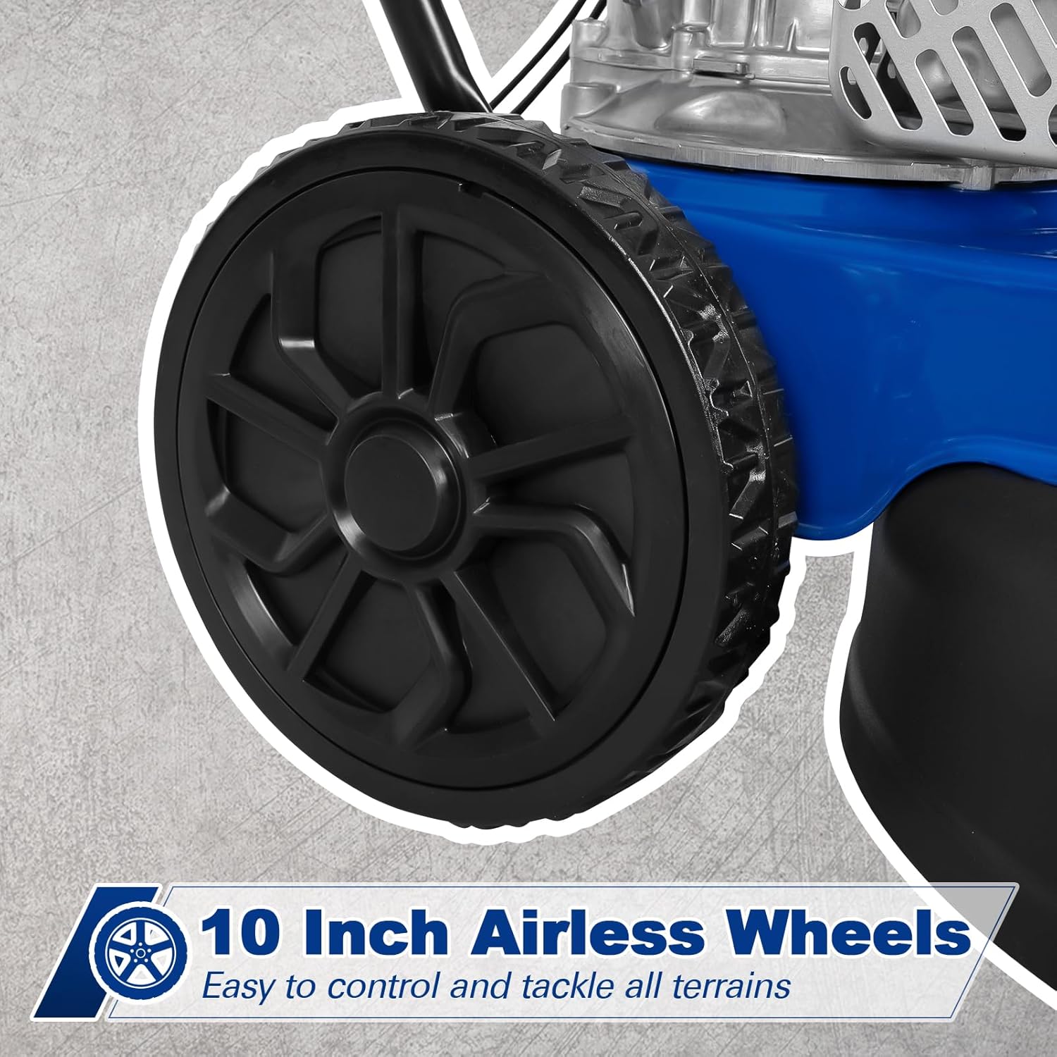 • MANEUVERABLE & USER-FRIENDLY DESIGN: Designed with 10-inch never-flat wheels for easy movement over rough terrain and tight spaces. The foldable handle enables compact storage, while the tool-free assembly makes setup quick and straightforward.