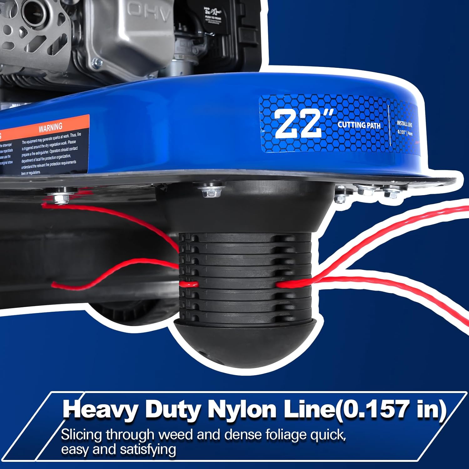• DURABLE STEEL DECK & WIDE CUTTING PATH: Built with a heavy-duty one-piece steel deck for enhanced stability and reduced vibration. The 22-inch cutting diameter with tough nylon line clears a wide swath in a single pass, saving time and effort.