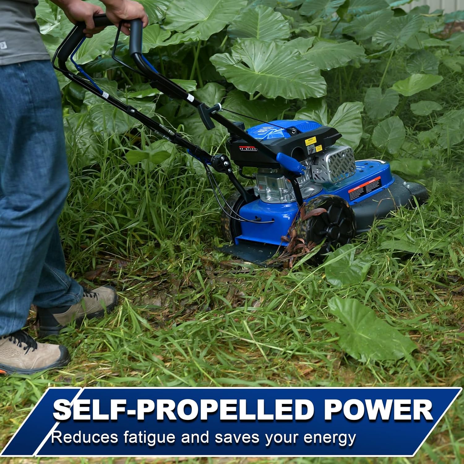 • SELF-PROPELLED FOR EFFORTLESS MOWING: Features a self-propelled drive system with a steady speed of 3.06 km/h (approx. 1.9 mph), allowing you to maneuver across various terrains effortlessly—no pushing required, just guide and go.