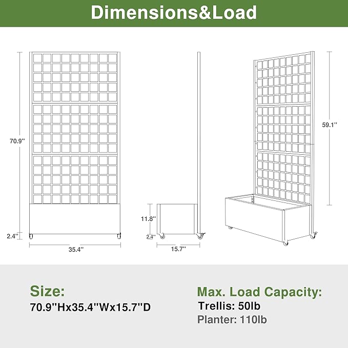• Space-Efficient Trellis Design: The integrated trellis allows you to grow climbing flowers and vegetables, maximizing vertical space and adding charm to small gardens.