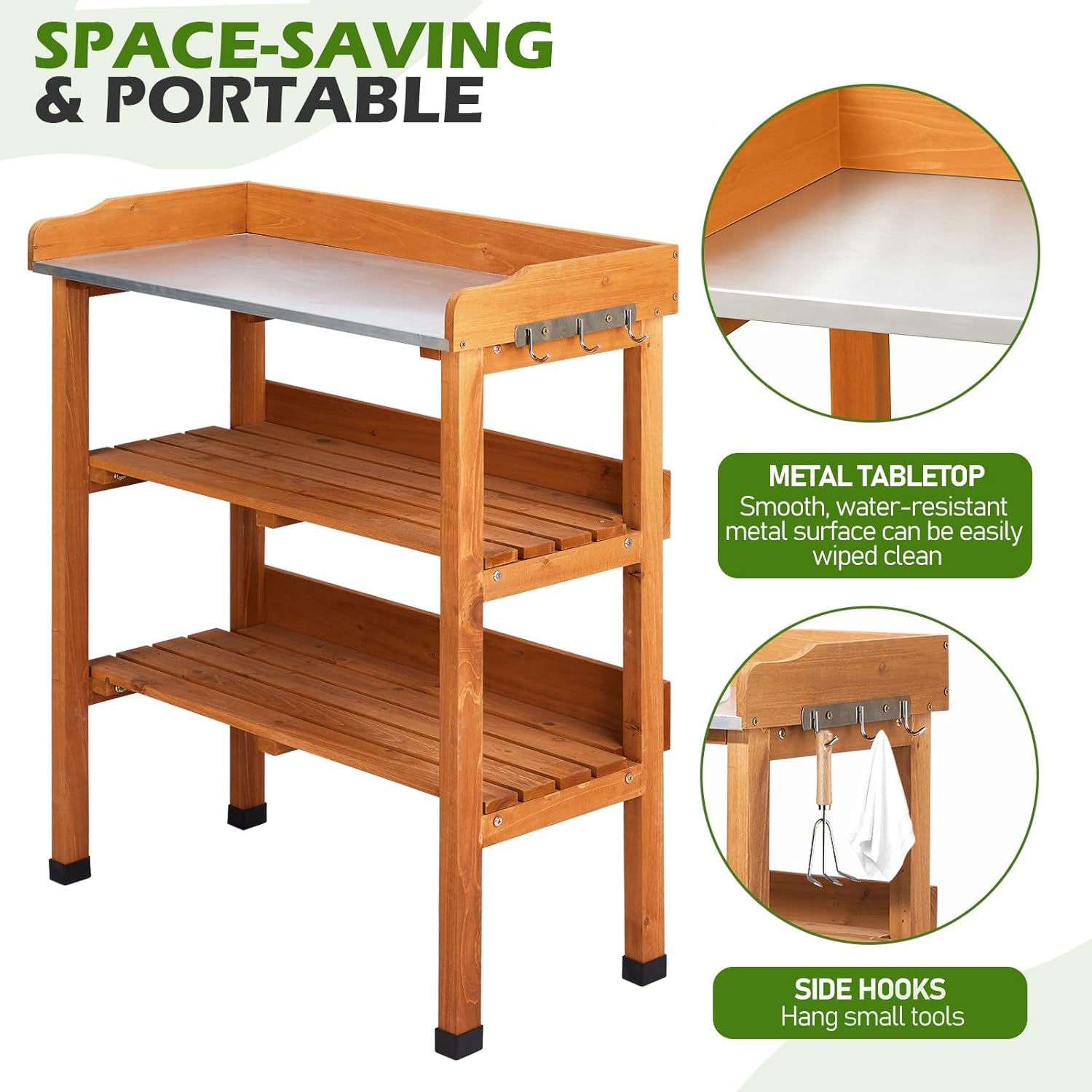 • 【Low-Maintenance Metal Top】Made with durable, smooth-coated metal that sheds water and stains. Simple to wipe down after gardening projects.