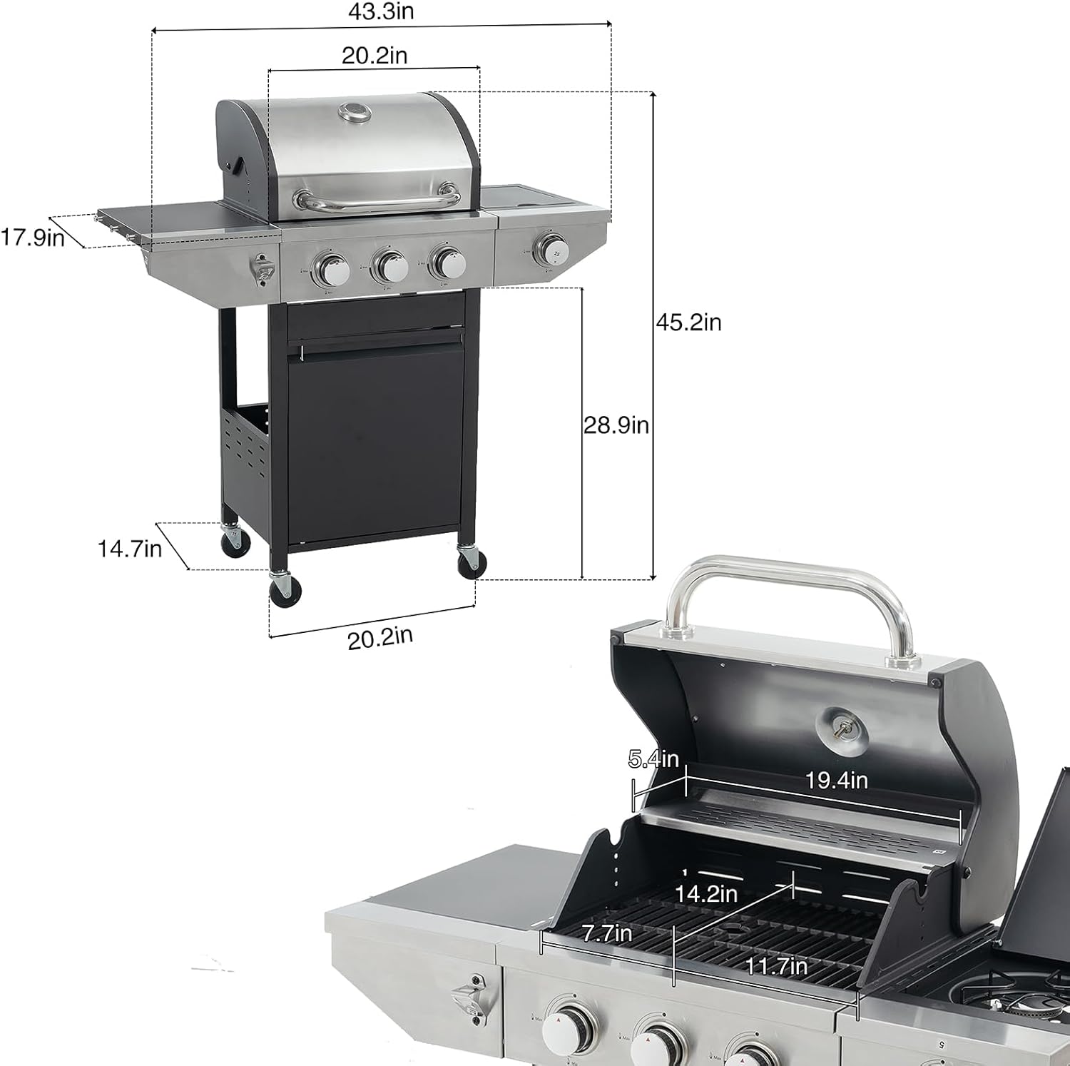 Endark 3-burner propane gas grill | 37,000 BTU stainless steel with side-fire function | with enameled cast iron grate, thermometer and side stand wheels | great for patio and garden outdoor cooking