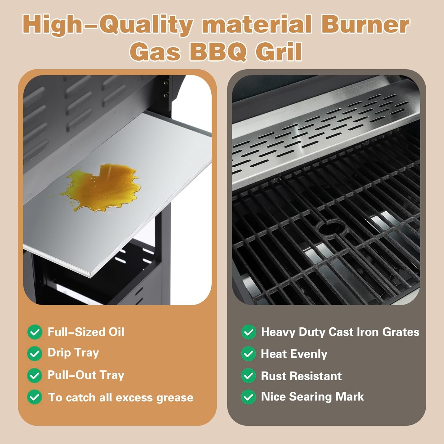• The lid is equipped with a high-precision thermometer, so you can accurately monitor the internal temperature without opening the lid frequently. Each burner can adjust the firepower independently, whether it is low-temperature slow roasting or high-temperature fast frying, you can easily control it to ensure that every food is cooked just right.