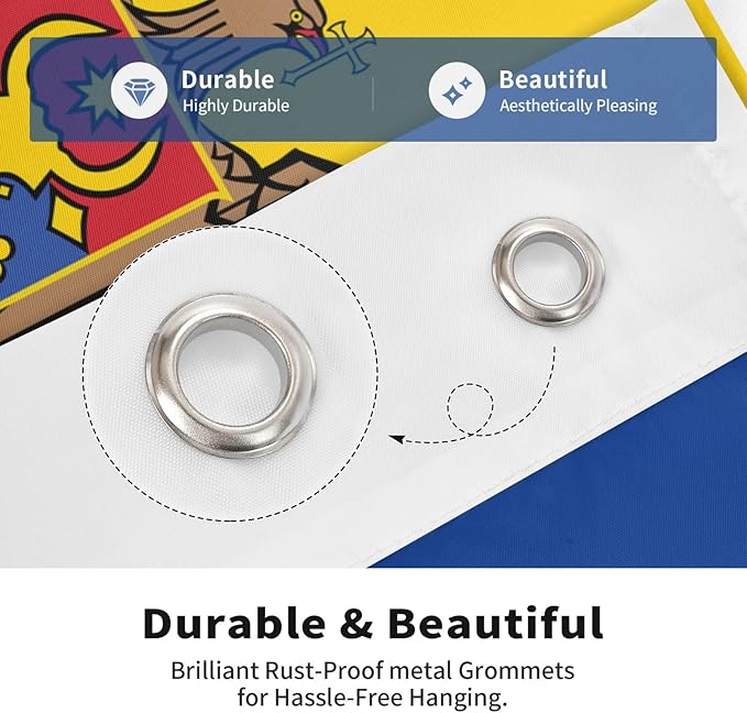 • This 2x3 ft flag Moldova Moldavian Flag banner is stitched double all around the edge and strengthened by two brass grommet to increase flag life and prevent fraying. Installation and disassembly are very convenient.