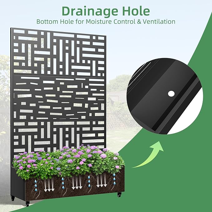 • Effective Drainage System: With a 12-inch deep planting bed and drainage holes, this planter prevents waterlogging, ensuring your plants receive the ideal moisture for healthy growth.
