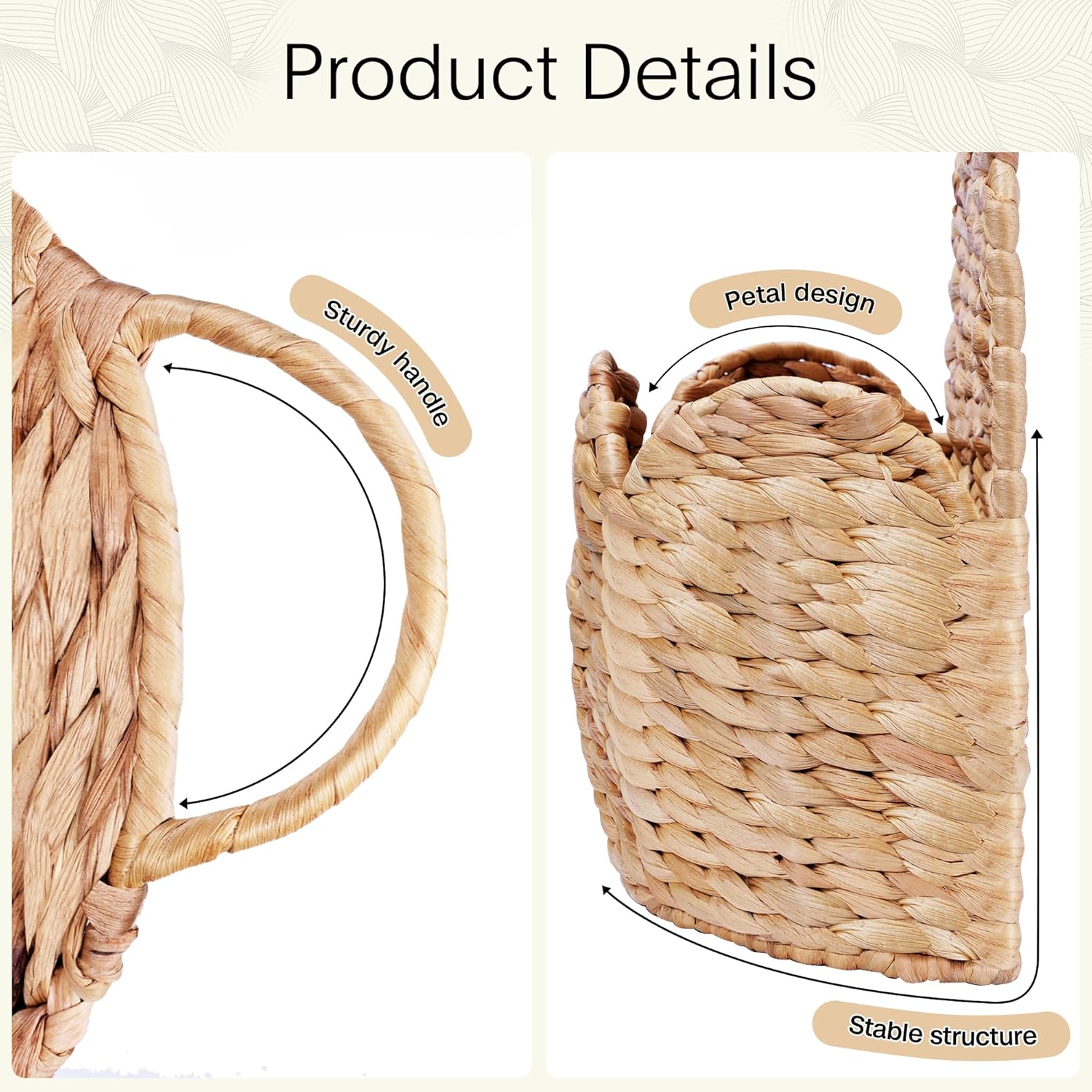 • 【Exclusive Wave Rim & Fan-Shaped Base Design】This basket features a unique wavy rim and an elegantly flared fan-shaped base, setting it completely apart from ordinary planters. Its proprietary structure not only creates eye-catching visual appeal but also delivers exceptional stability, effectively preventing tipping and providing ample space for floral arrangements.