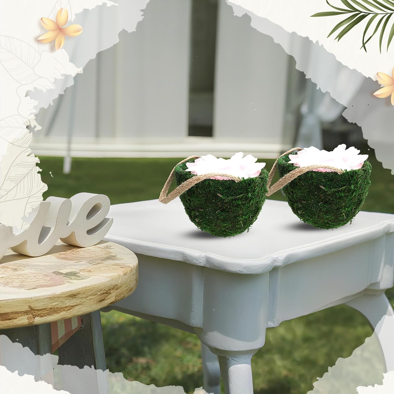 • Distinctive Design: our flower basket is made of simulated moss and wide rope, featuring a very appealing look color and soft rope handle for easy carrying; Our Distinctive craftsmanship makes our flower baskets very sturdy and durable, able to meet any of your needs, making them the ideal choice for your wedding flower baskets, candy baskets, and more