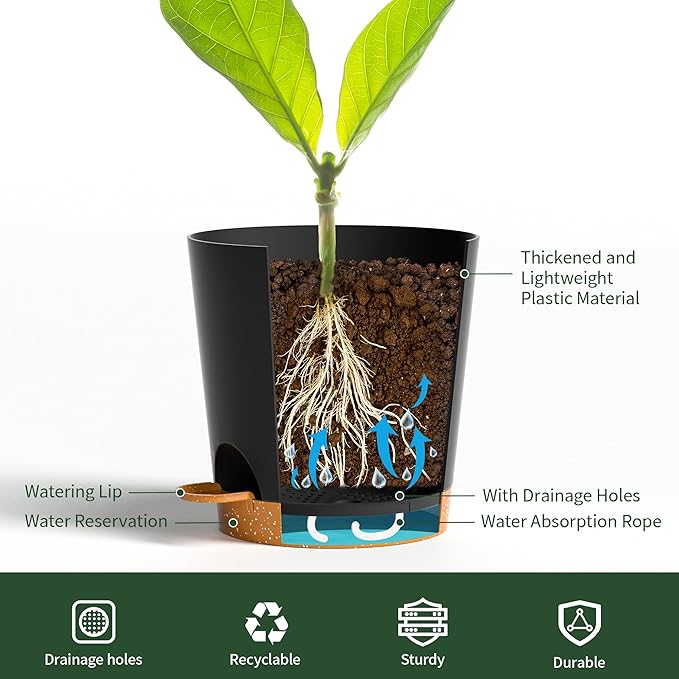 • Stylish Home & Garden Decor: Featuring a minimalist design, these self watering pots add a touch of elegance to any space, including windowsills, patios, kitchens, and offices. Great as gifts for plant lovers.