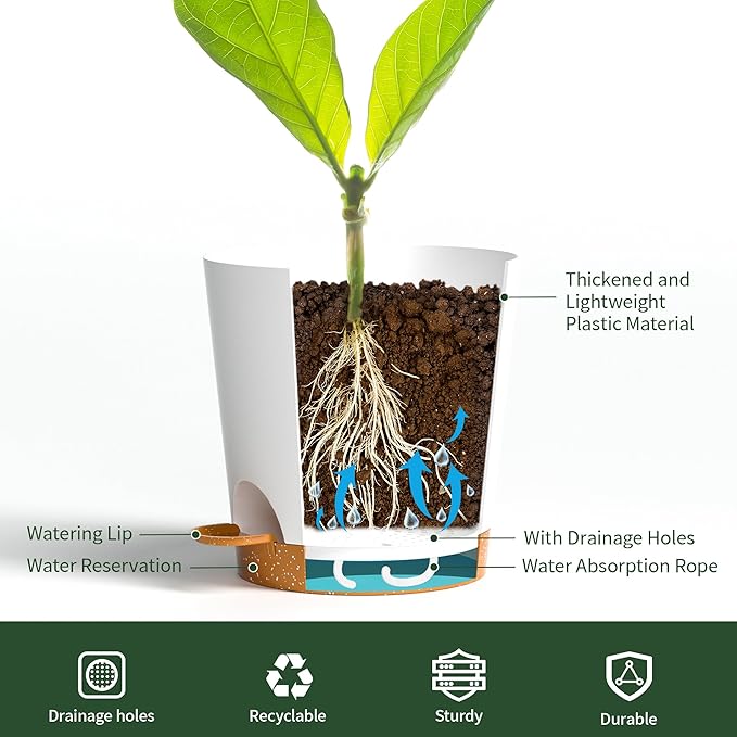 • Stylish Home & Garden Decor: Featuring a minimalist design, these self watering pots add a touch of elegance to any space, including windowsills, patios, kitchens, and offices. Great as gifts for plant lovers.