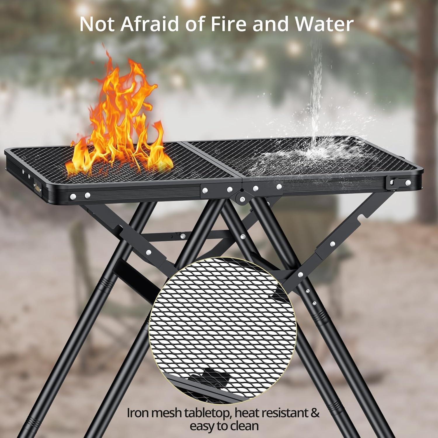 • Iron Mesh Table Top, Heat Resistant & Easy to Clean: The tabletop is designed with a unique coated metal mesh that prevents the tabletop from rusting or warping due to standing water. And it reduces surface stains, which can be easily removed by simply wiping with a damp paper towel