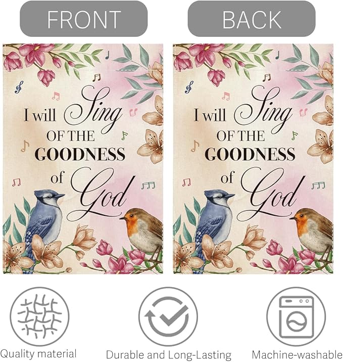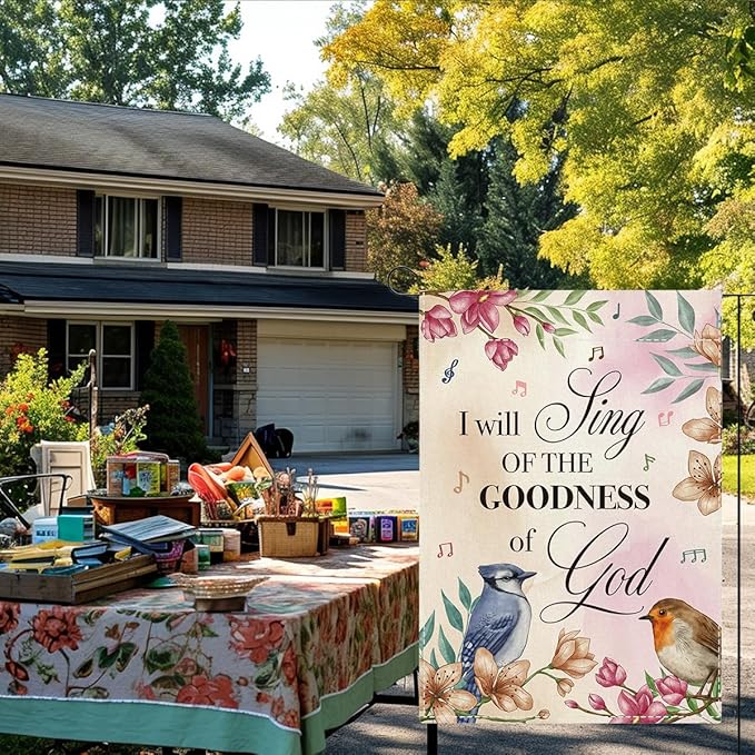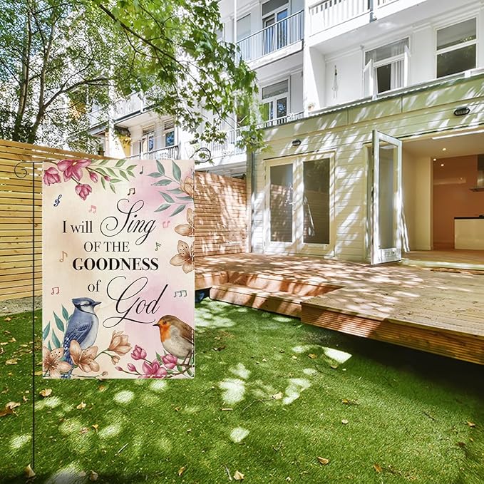 Religion Garden Flag I Will Sing of the Goodness of God Lawn Porch Bible Verse Decor Small Double Sided Burlap art Stained Glass Style Garden Flags 12 x 18 Inch for Outside