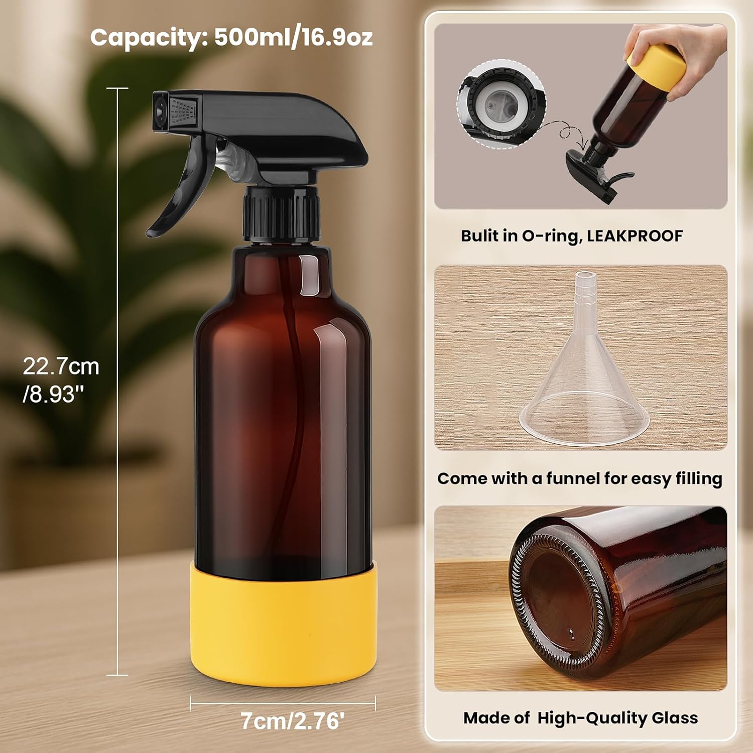 • PREMIUM GLASS SPRAY BOTTLES & STURDY SILICONE SLEEVE: Our glass sprayers are crafted from high-quality material, ensuring for daily use with cleaning solutions, hair products, or plant care. The included silicone sleeve ensures minimizing the risk of breakage and slips, making it safe for daily use.