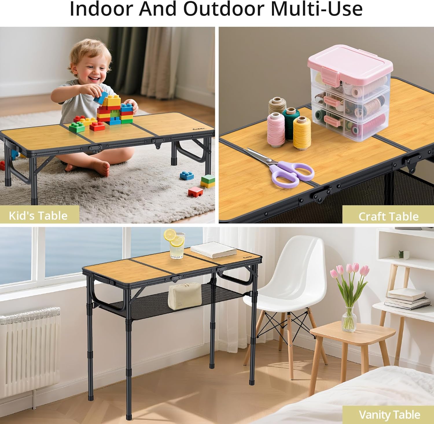 • Multifunctional Table for Various Occasions: This 3ft folding table is perfect for outdoor and indoor use. It can be used as BBQ grill side table, picnic table, card games table, fishing table, tailgate table, serving table for dining, working and study table for adult and kids