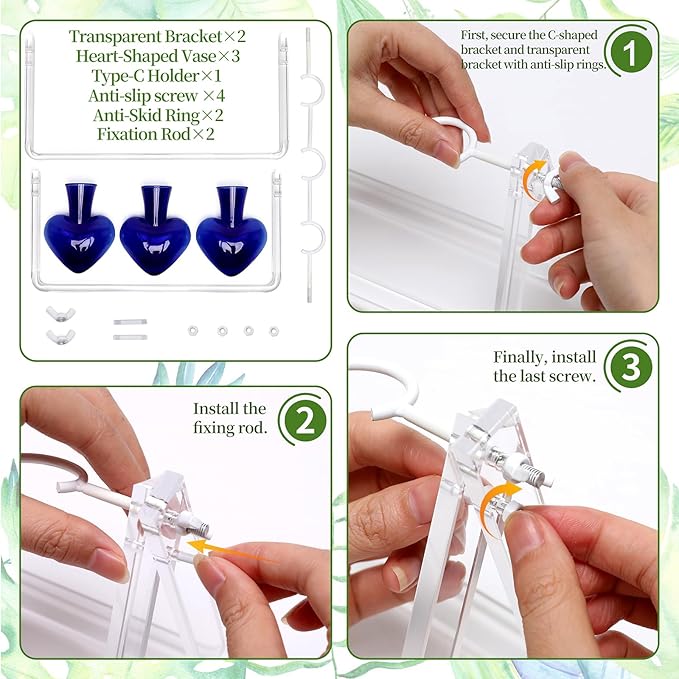 • Great Combination - The frame is made of transparent acrylic, formed in one piece, sturdy and durable. The three colored glass bottles are made of high borosilicate heat-resistant glass (thick, durable, non-fading, and long-lasting). The elegance of the acrylic and the beauty of the colored hearts add a touch of freshness and grace to your home and office.