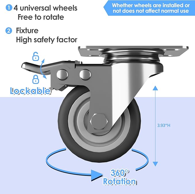 • 【Swivel Wheels with Lock】Metal storage cabinet with wheels has 4 lockable wheels,you can move them around as needed and the casters and wheels work great on all the different surfaces,besides the wheels can be locked and you can fix the cabinet where you want to place.