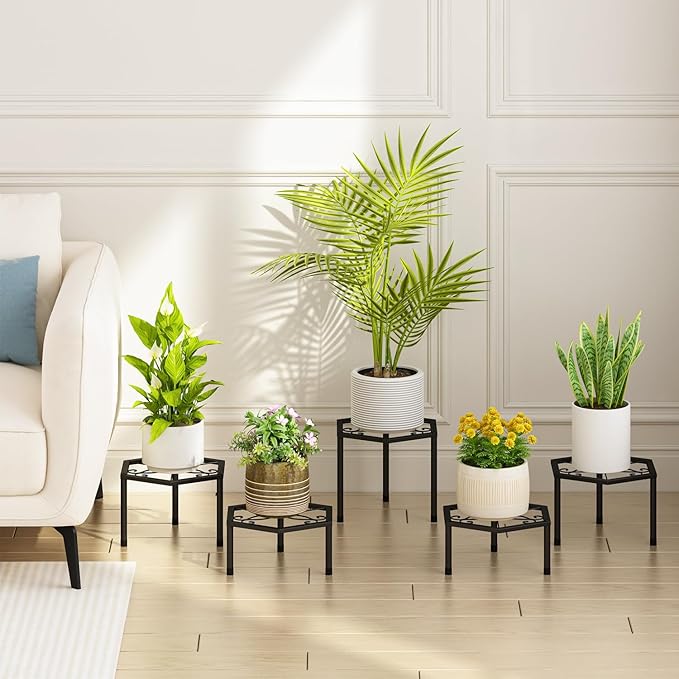 • Simple Style Plant Stand : Our 5 pack metal plant stand indoor set features a decorative iron art design, adding a stylish and natural touch to your indoor space.