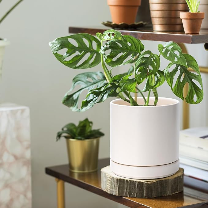 • Drainage holes and detachable/perfectly fitting ceramic saucers included.
