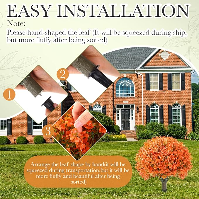 • Easy to Install & Shape: with built-in ground spikes for easy installation, these artificial fall plants can be placed in soil or pots; The flexible branches allow for easy reshaping, ensuring your Halloween decor or fall porch decor looks just how you want it