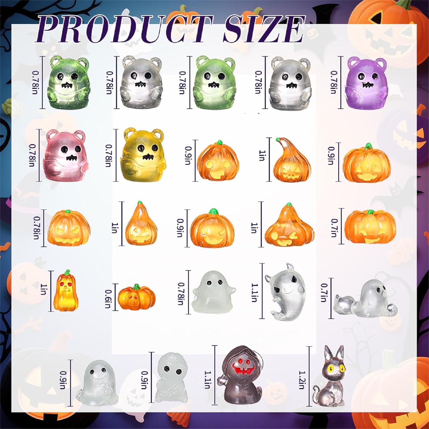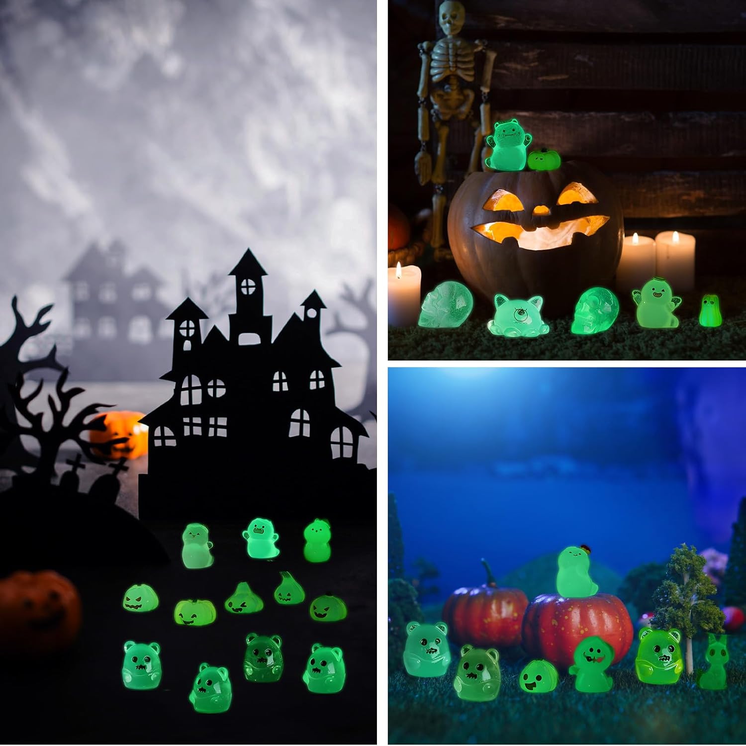 • Halloween Glow in Dark Figures Set: transform your space with 58 diverse glow in dark Halloween figures, Halloween miniatures illuminate in the dark; Craft a full-fledged Halloween ambiance effortlessly