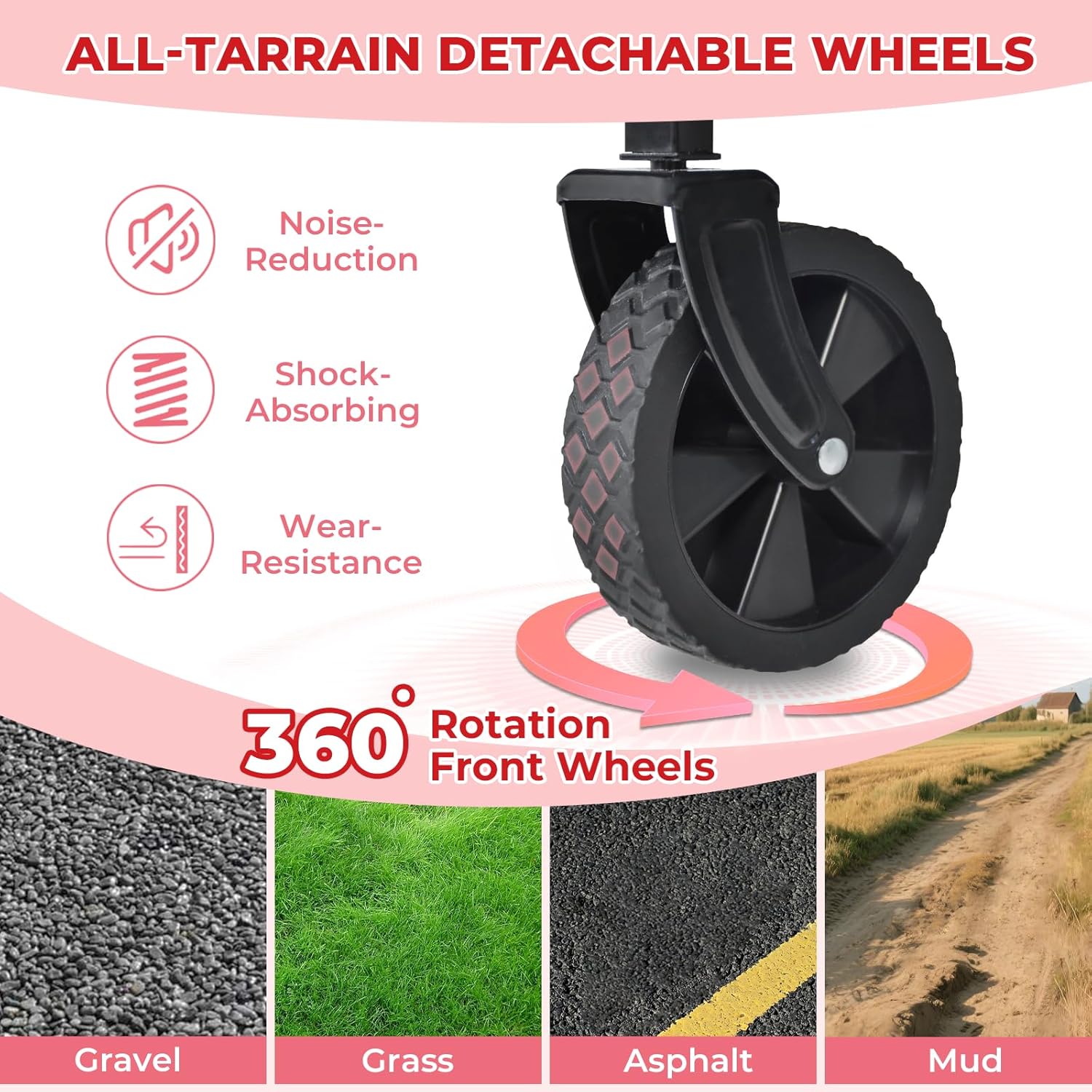 • Smooth 360° Wheels For All-Terrain Use:Equipped with quiet, low-noise 360° swivel wheels, this foldable cart glides over sand, grass, gravel, or pavement. Easy to steer on garden paths, parking lots, or park trails