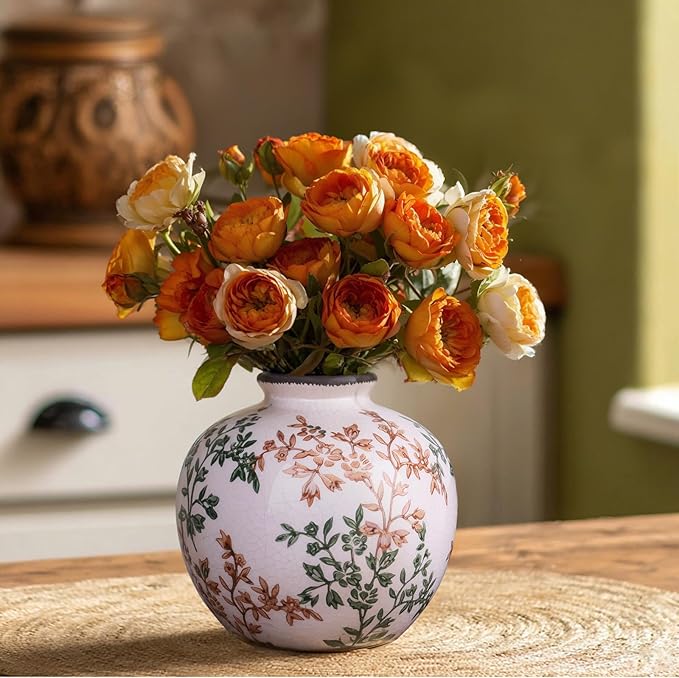 • Ceramic Craftsmanship, Both Texture and Details] Made of high-quality ceramic material fired at high temperature, the surface glaze is delicate and natural, with a warm texture, which not only retains the traditional flavor of antique vases, but also shows the freshness of modern aesthetics. The details are well handled, it is a farmhouse vase with a sense of rusticity and sophistication.