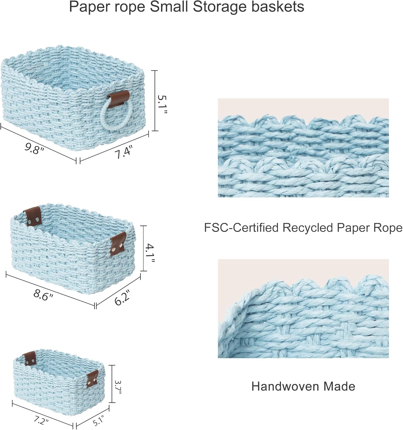 • MULTI-PURPOSE: Available in three convenient sizes, this versatile set offers creative ways to meet all your storage needs. Whether you're tidying up your nightstand, organizing bathroom shelves, or clearing clutter from your living room surfaces, these baskets adapt seamlessly to every corner of your home, adding a touch of practical charm to your everyday life.
