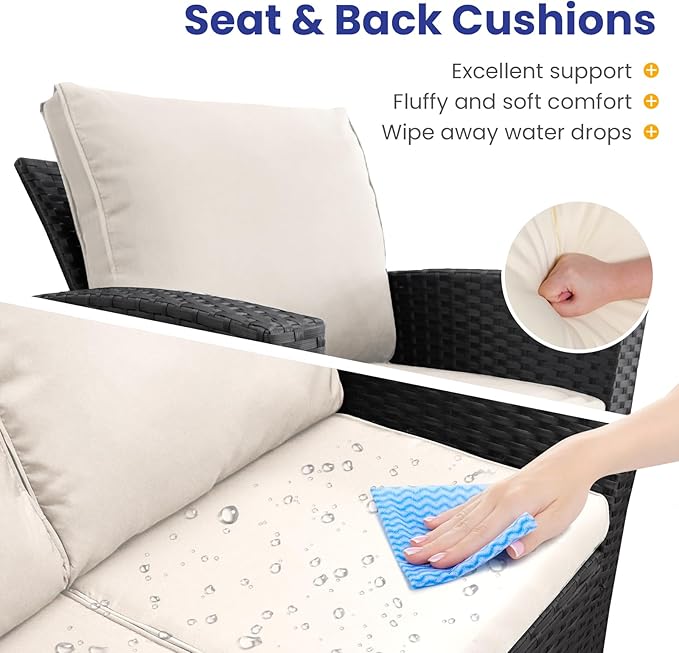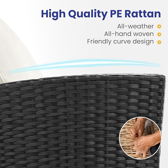 • All-Weather Durability: Built to last,the patio furniture set combines rugged construction with low-maintenance care. The powder-coated steel frame and handwoven PE wicker can spend less time maintaining and more time enjoying your outdoor