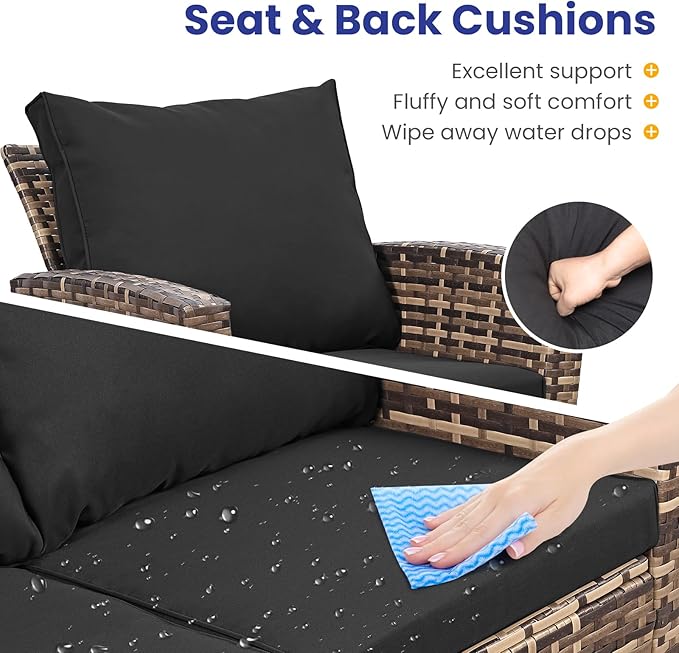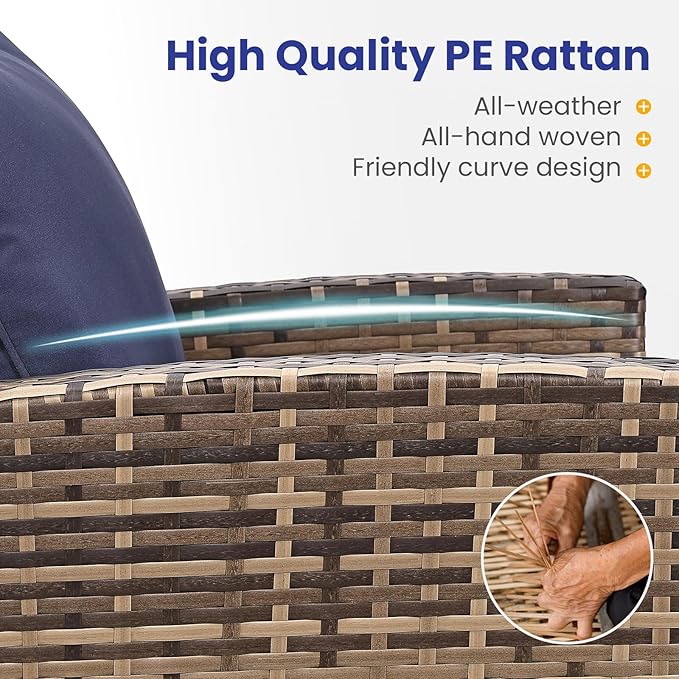 • All-Weather Durability: Built to last,the patio furniture set combines rugged construction with low-maintenance care. The powder-coated steel frame and handwoven PE wicker can spend less time maintaining and more time enjoying your outdoor