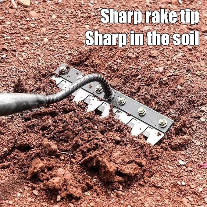 • Ergonomic & Comfortable – Features a removable handle with a non-slip grip for easy control. The carbon steel design reduces hand fatigue, enabling longer, more comfortable weeding sessions for a flawless garden【Heavy-Duty Weeding Rake】 Made with high-carbon steel tines, this rugged tool effortlessly breaks through rocky, clay, and dry soil. Built to last, it handles tough weeding and soil prep with ease—ideal for both home gardeners and professionals