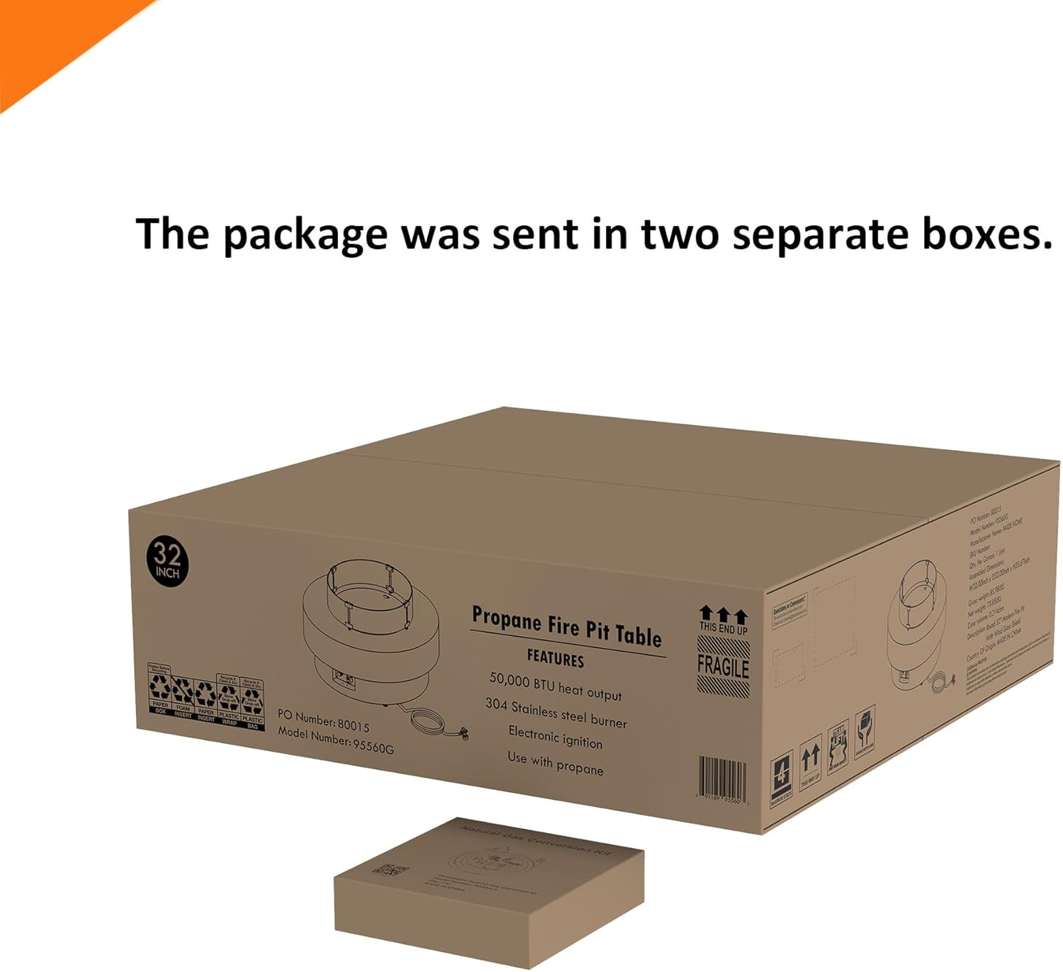 • Natural Gas Conversion Kit - Includes a natural gas converstion kit, which will be shipped separately. Converts propane fire pit tables to natural gas. We shipped the package in two separate boxes, It is possible that one package will arrive before the other.