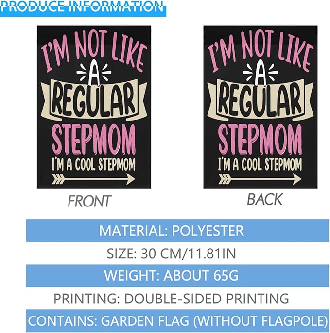 I'm Not Like a Regulars Step Mom Garden Flag 12x18 Double Sided Funny Decorative Banner for Home Garden Patio and Yard