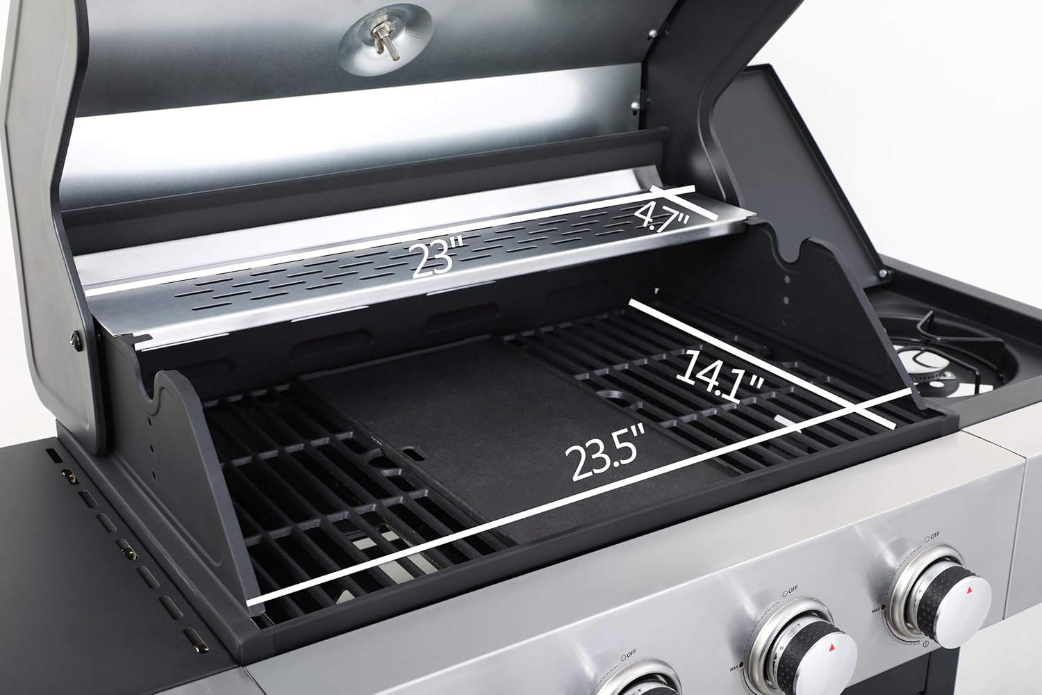 • 🔥 Massive 46,790 BTU Output – Four primary burners + side burner for full meal prep.