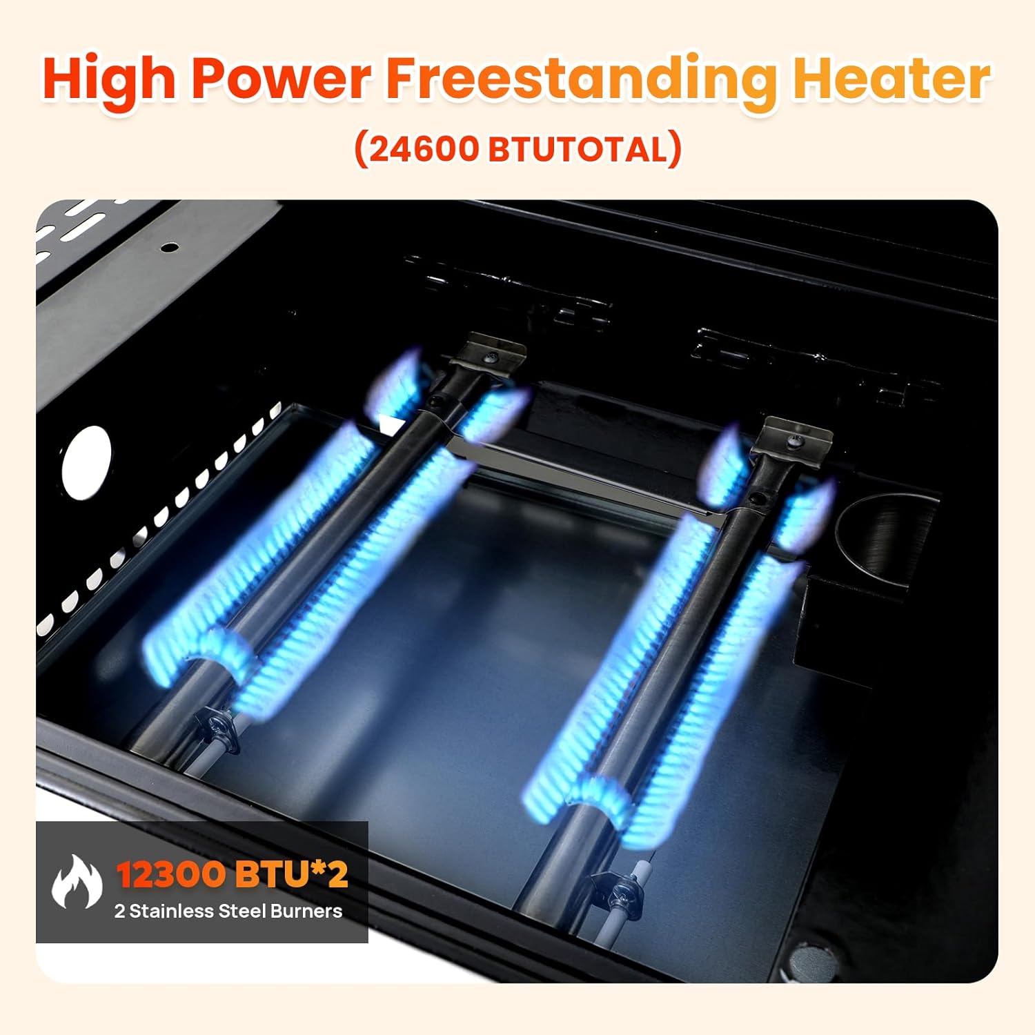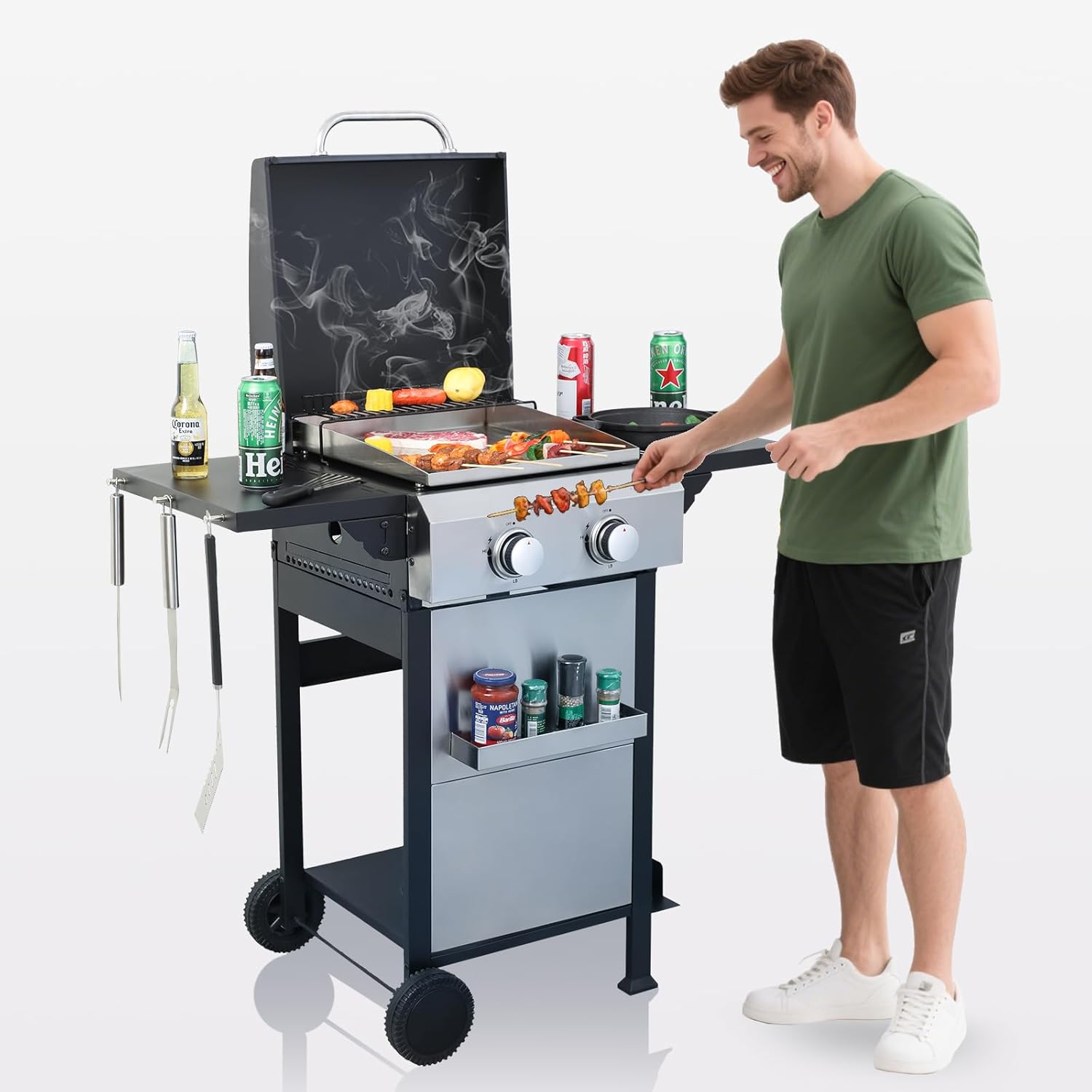 • 🔥 High-Performance Stainless Steel Burners - This propane gas grill features 2 powerful stainless steel burners delivering a total of 24,600 BTU per hour. With a built-in piezoelectric ignition system, you can enjoy instant start-up—just push and turn the control knob. It’s reliable, efficient, and ready to fire up your outdoor meals in seconds.