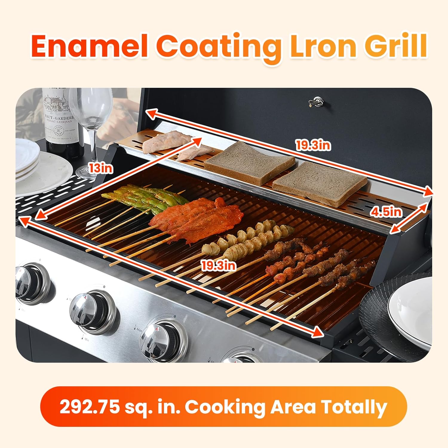 • 🍖 Spacious Cooking & Warming Areas - Equipped with porcelain-enameled wire grates, this gas grill offers a generous 19.3" x 13" cooking area plus a 19.3" x 4.5" warming rack. You’ll have ample space to sear steaks, grill burgers, and keep side dishes warm—all at the same time. Perfect for family meals and outdoor gatherings.