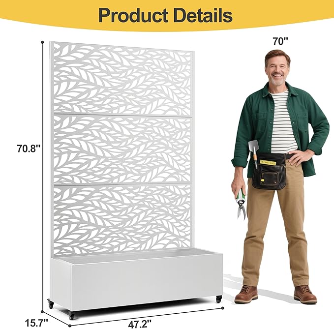 • Suitable for Various Environments This planter with trellis is ideal for gardens, balconies, patios, and greenhouses, perfect for growing flowers, fruits, vegetables, and herbs. It also serves as an privacy planters for patio, creating a tranquil space. Ideal for beautifying your area or enhancing privacy.