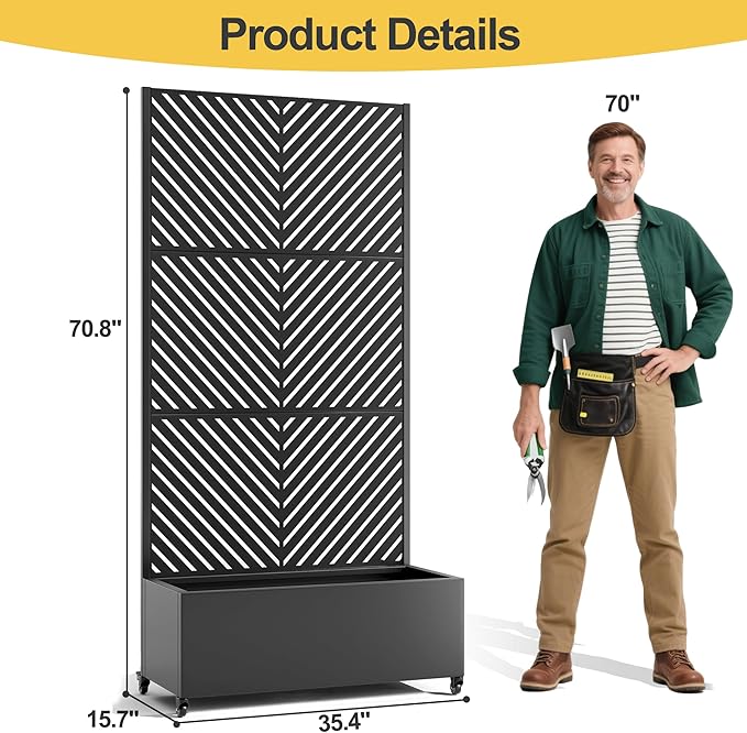 • Suitable for Various Environments This planter with trellis is ideal for gardens, balconies, patios, and greenhouses, perfect for growing flowers, fruits, vegetables, and herbs. It also serves as an privacy planters for patio, creating a tranquil space. Ideal for beautifying your area or enhancing privacy.