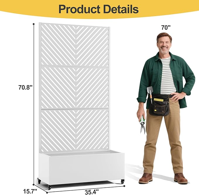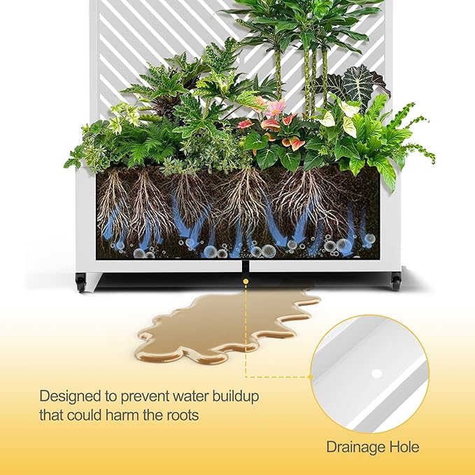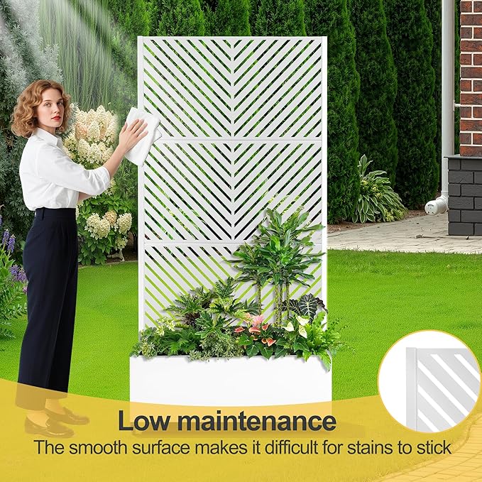 • Suitable for Various Environments This planter with trellis is ideal for gardens, balconies, patios, and greenhouses, perfect for growing flowers, fruits, vegetables, and herbs. It also serves as an privacy planters for patio, creating a tranquil space. Ideal for beautifying your area or enhancing privacy.