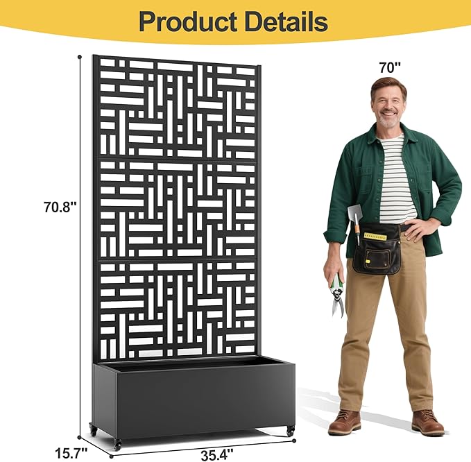 • Suitable for Various Environments This planter with trellis is ideal for gardens, balconies, patios, and greenhouses, perfect for growing flowers, fruits, vegetables, and herbs. It also serves as an privacy planters for patio, creating a tranquil space. Ideal for beautifying your area or enhancing privacy.