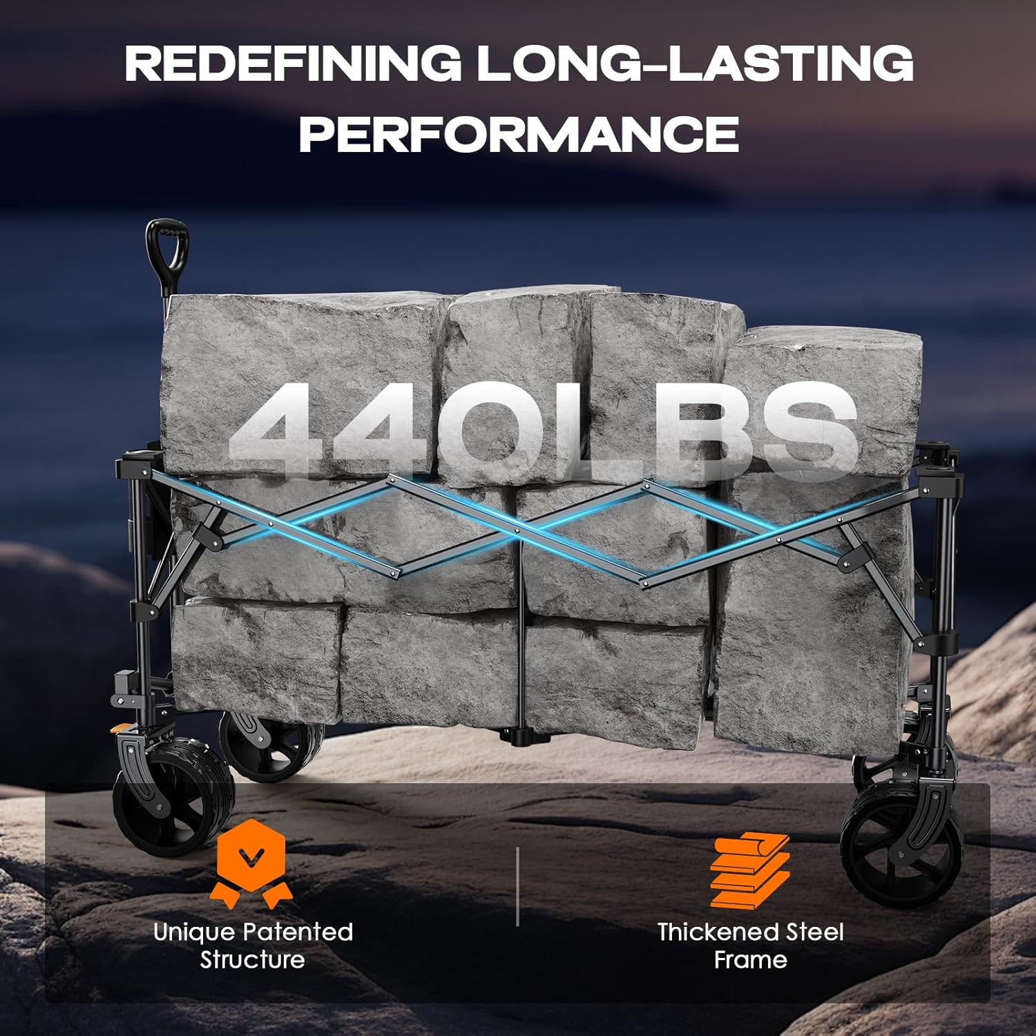 • Built to Last 5+ Years: Tough all metal frame and double-layer 600D waterproof Oxford fabric handles 440LBS—no bending or tearing. Durable for beach, camping, and outdoor use. Not a "one-season" wagon—your reliable outdoor companion.