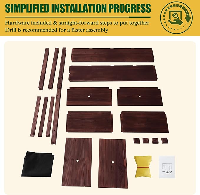 • PREMIUM FIR WOOD CONSTRUCTION-The structure of this raised garden bed is made of solid cedar which is known for its nature of eco-friendly and sturdiness. No doubt this garden bed would meet your needs of growing herbs and vegetables with care for both outdoor and indoor! Feel the touch of its smooth surface for the superiority.