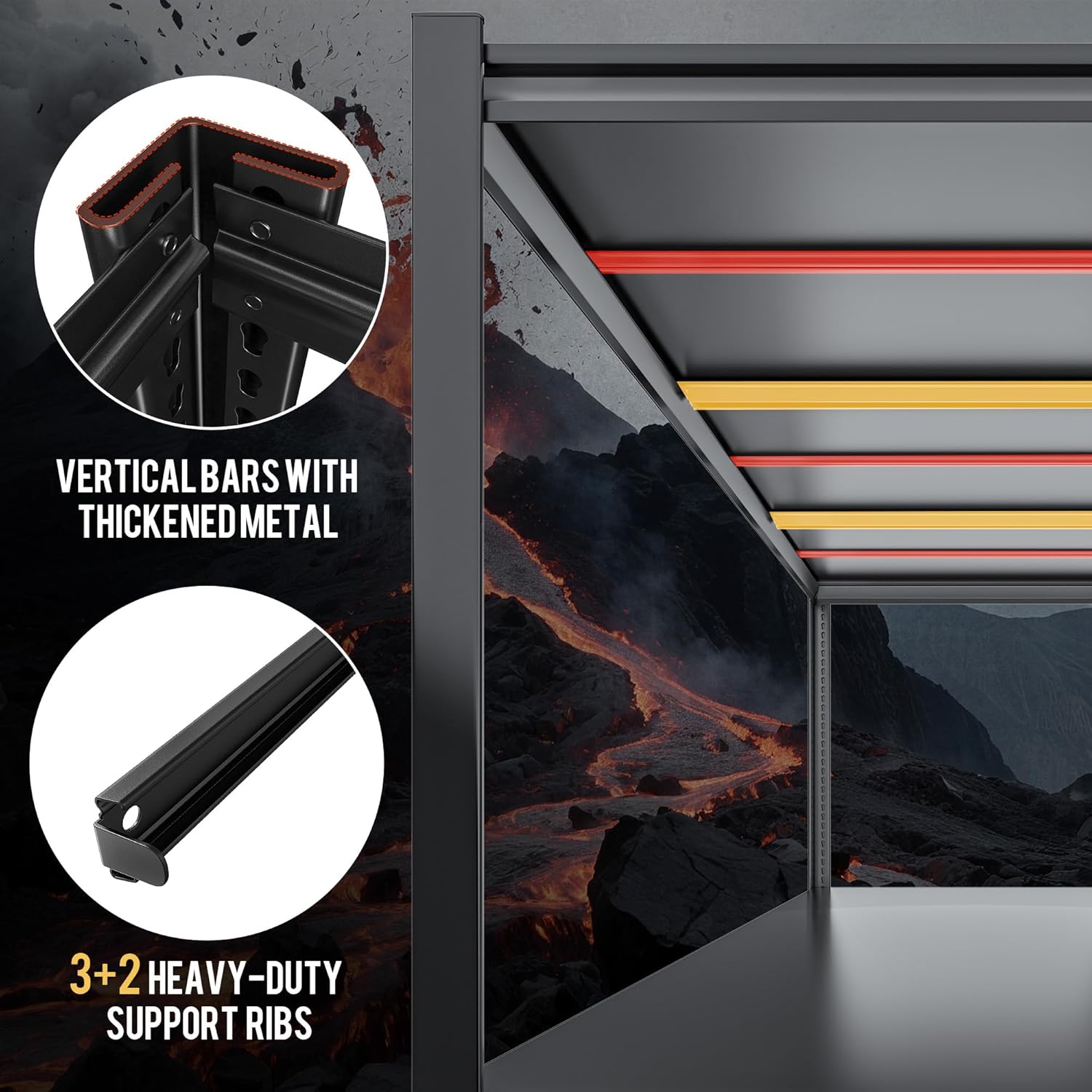 • 【Heavy Duty Shelving 2120 LBS Capacity】 Supported by a reinforced frame with 5 sturdy support ribs, this unit has a huge total weight capacity of 2650 pounds (530 pounds per rack). Store heavy vehicle parts, aquaculture fish tanks, toolboxes, camping equipment, sports goods, paint cans, potted plants and books with confidence without worrying about bending or toppling over