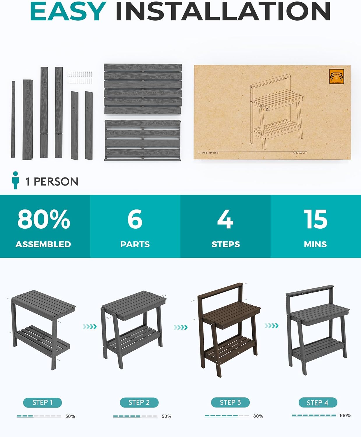 • Quick & Tool-Free Assembly: Everything you need for setup comes in the box. Just follow the straightforward instructions, and you can have your new garden work bench fully assembled and ready to use in under 20 minutes—no extra tools required.