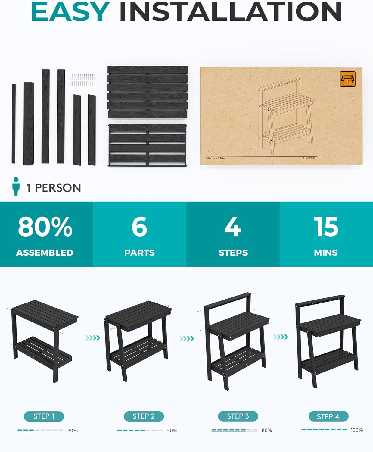 • Quick & Tool-Free Assembly: Everything you need for setup comes in the box. Just follow the straightforward instructions, and you can have your new garden work bench fully assembled and ready to use in under 20 minutes—no extra tools required.